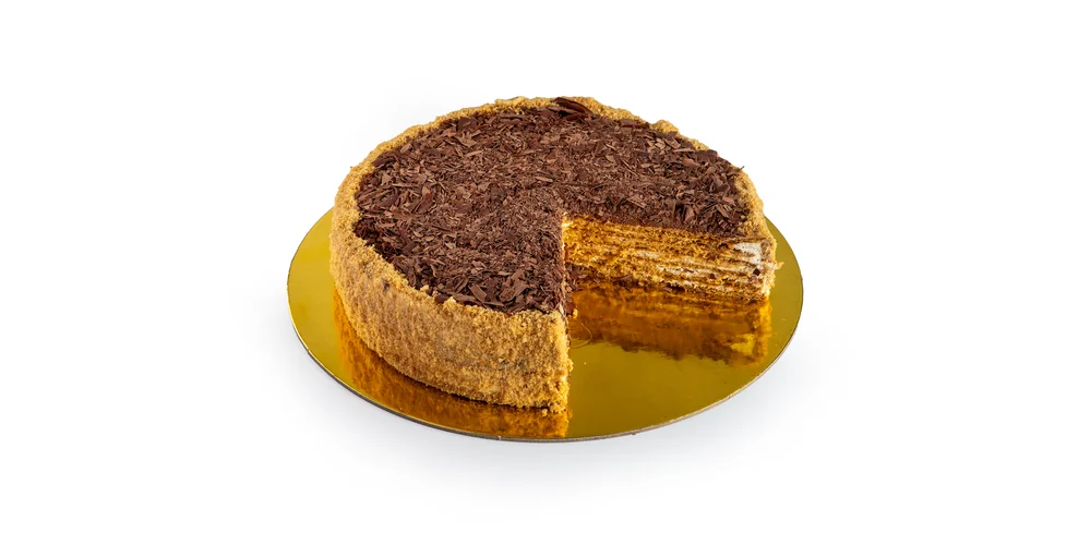 Пирог "Медовый" ароматные медовые коржи с добавлением натурального меда,пропитан нежным сметанно-сливочным кремом,оформленный шоколадом