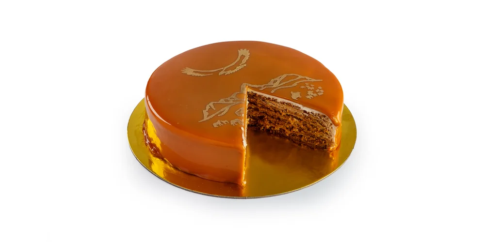Торт"Жайляу"-нежные ароматные медовые коржи, пропитанные сметано-сливочным кремом. Уникальный вкус добавляет талкан и майкурт. Торт покрыт нежной карамелью